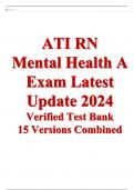 ATI RN Mental Health A Exam Latest Update 2024 Verified Test Bank 15 Versions Combined