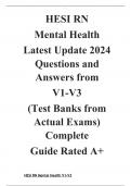HESI RN Mental Health V1-V3 Latest Update 2024 Questions and Answers (Test Banks from Actual Exams) Complete Guide Rated A+