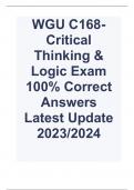- WGU C168-Critical Thinking & Logic Exam 100% Correct Answers Latest Update 2023/2024 • Exam (elaborations)