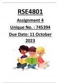 COMPLETE ANSWERS WITH LENGTHY ANSWERS, 2023 RSE4801 ASSIGNMENT 4