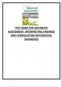 TEST BANK FOR ADVANCED ASSESSMENT: INTERPRETING FINDINGS AND FORMULATING DIFFERENTIAL DIAGNOSES 4th Edition, Mary Jo Goolsby, Laurie Grubbs