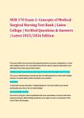 This comprehensive test bank for NUR 170 Exam 2 covers Medical-Surgical Nursing Concepts with verified questions and answers from Galen College’s latest curriculum (2025/2026 Edition). Perfect for nursing students preparing for exams, NCLEX review, or mastering key concepts in: