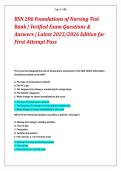 This comprehensive BSN 206 Foundations of Nursing Test Bank contains verified exam questions and answers for the latest 2025/2026 edition, designed to help nursing students pass their exams on the first attempt. Covers essential topics including vital signs, infection control, wound care, mobility, patient safety, urinary elimination, oxygenation, and sterile technique. Each question includes detailed rationales and multiple-choice answers to reinforce learning. Perfect for review, practice exam...