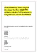 This BIOS 255 Anatomy & Physiology III Final Exam Test Bank contains 110+ verified exam-style questions with detailed answers and rationales, fully updated for the 2025/2026 academic year. Topics include cardiovascular system, blood composition, lymphatic system, immune response, respiratory physiology, and more. Ideal for nursing, pre-med, and A&P students preparing for exams, quizzes, or the NCLEX®. Includes calculation questions, labeling diagrams, and critical thinking scenarios. Boost your...