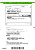 Pearson Edexcel GCSE (9–1) History BOOKLET B2: The reigns of King Richard I and King John, 1189–1216 Combined Question Paper and Mark Scheme JUNE 2025