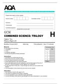Question paper with marking scheme i x Package deal Exam (elaborations) • 58 pages • by RHYMEY • uploaded 2025 Quick View i x 2025 AQA GCSE • 2025 AQA GCSE 2025 AQA GCSE COMBINED SCIENCE: TRILOGY Higher Tier Biology Paper 1H and H2 BUNDLED Question paper with marking scheme • By  RHYMEY 2025 AQA GCSE COMBINED SCIENCE: TRILOGY Higher Tier Biology Paper 1H Question paper with marking scheme (0) $8.49 0x sold 2025 AQA GCSE COMBINED SCIENCE: TRILOGY Higher Tier Biology Paper 1H