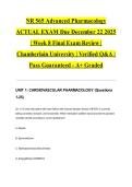 StuviaNurseVault Welcome to StuviaNurseVault! 1427 Documentos 0 Tarjetas de estudio 28 Paquetes Community 5 Seguidores 0 Siguiendo 10 Comentarios recibidos 5 3 1 1 0 3 semanas hace • evanbutcher FISDAP READINESS ACTUAL EXAM 2026/2027 | Comprehensive Practice Test | Verified Q&A | Pass Guaranteed - A+ Graded This is not the readiness exam. 1 mes hace • jaylin651 NUR 163 ACTUAL EXAM 2026/2027 | Concepts of Practical Nursing for the Older Adult | Exam 2 | Verified Q&A | Pass Guaranteed - A+ Graded 1 mes hace • nkiashene28 ATI Dosage Calculation RN Fundamentals Proctored Assessment 3.2 – Questions and Answers (2025/2026 Update) | Graded A+ Por: • 1 mes hace Thank you for the review glad it helped you .If you ever need more study materials feel free to check my other uploads 1 mes hace • adelaidasanchez63 Test Bank For Anatomy and Physiology 2nd Edition by OpenStax, ISBN: 9781711494067, All 28 Chapters Covered, Verified Latest Edition | BEST STUDY Por: • 1 mes hace Thank you for the review glad it helped you .If you ever need more study materials feel free to check my other uploads 5 meses hace • drmeena QME Exam 2024 (Actual Exam with 350 Questions, Correct Detailed Verified Answers, Graded A+) + Mostrar mas comentarios 1463 artículos Todo Documentos Tarjetas de estudio Paquetes Lo más vendido El más nuevo Puntuación NR 565 Advanced Pharmacology ACTUAL EXAM Due December 22 2025 | Week 8 Final Exam Review | Chamberlain University | Verified Q&A | Pass Guaranteed - A+ Graded (0) $18.49 0x vendido Excel in your Chamberlain University NR 565 Advanced Pharmacology final exam with this complete actual Week 8 exam review due December 22, 2025. Covers essential topics including pharmacokinetics and pharmacodynamics, autonomic nervous system drugs, cardiovascular medications, endocrine therapies, antimicrobial agents, and prescribing considerations for advanced practice. Each question includes detailed rationales and elaborated solutions to reinforce advanced pharmacology concepts. Backed by ou... i x Examen • 60 páginas • por STUDYACEFILES • subido 2026 Vista rápida i x NR 565 Advanced Pharmacology • NR 565 Advanced Pharmacology NR 565 Advanced Pharmacology ACTUAL EXAM Due February 1 2026 | Week 4 Midterm Exam Review | 100 Questions | Complete Solutions | Chamberlain University | Verified Q&A | Pass Guaranteed - A+ Graded (0) $18.99 0x vendido Excel in your Chamberlain University NR 565 Advanced Pharmacology midterm with this complete actual Week 4 exam review containing 100 questions with complete solutions due February 1, 2026. Covers essential topics including pharmacokinetics and pharmacodynamics, autonomic nervous system drugs, cardiovascular medications, endocrine therapies, and antimicrobial agents for advanced practice. Each question includes detailed rationales and elaborated solutions to reinforce pharmacology concepts. Back... i x Examen • 58 páginas • por STUDYACEFILES • subido 2026 Vista rápida i x NR 565 Advanced Pharmacology • NR 565 Advanced Pharmacology NR 565 Advanced Pharmacology ACTUAL EXAM | Week 4 Midterm Exam Practice Set | Chamberlain University | Examplify Online Proctored Review | Verified Q&A | Pass Guaranteed - A+ Graded (0) $18.99 0x vendido Excel in your Chamberlain University NR 565 Advanced Pharmacology midterm with this complete actual Week 4 exam practice set designed for Examplify online proctored review. Covers essential topics including pharmacokinetics and pharmacodynamics, autonomic nervous system drugs, cardiovascular medications, endocrine therapies, and antimicrobial agents. Each question includes detailed rationales and elaborated solutions to reinforce advanced pharmacology concepts. Backed by our Pass Guarantee. Down... i x Examen • 46 páginas • por STUDYACEFILES • subido 2026 Vista rápida i x NR 565 Advanced Pharmacology • NR 565 Advanced Pharmacology NR 507 Advanced Pathophysiology ACTUAL EXAM Due February 1 2026 | Week 4 Midterm Exam Review Guide | Chamberlain University | Verified Q&A | Pass Guaranteed - A+ Graded (0) $18.99 0x vendido Excel in your Chamberlain University NR 507 Advanced Pathophysiology midterm with this complete actual Week 4 exam review guide due February 1, 2026. Covers essential topics including cellular adaptation and injury, inflammation and immunity, genetic disorders, fluid and electrolyte imbalances, and pathophysiological mechanisms across body systems. Each question includes detailed rationales and elaborated solutions to reinforce advanced pathophysiology concepts. Backed by our Pass Guarantee. Dow... i x Examen • 40 páginas • por STUDYACEFILES • subido 2026 Vista rápida i x NR 507 Advanced Pathophysiology • NR 507 Advanced Pathophysiology PAEA PACKRAT Exam Test Bank ACTUAL EXAM 2026 | Newest Exam Prep | Verified Q&A | Pass Guaranteed - A+ Graded (0) $14.49 0x vendido Excel on your PAEA PACKRAT exam with this newest 2026 complete actual test bank designed for comprehensive exam prep. Covers essential topics including cardiology, pulmonology, gastroenterology, neurology, endocrinology, musculoskeletal disorders, infectious diseases, and clinical medicine across all major organ systems. Each question includes detailed rationales and elaborated solutions to reinforce clinical reasoning for physician assistant students. Backed by our Pass Guarantee. Download now. i x Examen • 39 páginas • por STUDYACEFILES • subido 2026 Vista rápida i x PAEA PACKRAT • PAEA PACKRAT WGU C190 Introduction to Biology ACTUAL EXAM 2025/2026 | Objective Assessment OA Exam Review | Complete Test | Brand New | Verified Q&A | Pass Guaranteed - A+ Graded (0) $14.99 0x vendido Pass your WGU C190 Introduction to Biology Objective Assessment (OA) with confidence using this brand new 2025/2026 complete actual exam review. Covers essential topics including cellular structure and function, genetics and heredity, evolution, metabolism and energy, biological molecules, ecology, and homeostasis