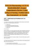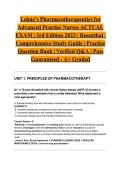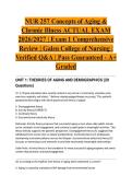 StuviaNurseVault Welcome to StuviaNurseVault! 1427 Documents 0 Flashcards 28 Package deal Community 5 Followers 0 Following 10 Reviews received 5 3 1 1 0 3 weeks ago • evanbutcher FISDAP READINESS ACTUAL EXAM 2026/2027 | Comprehensive Practice Test | Verified Q&A | Pass Guaranteed - A+ Graded This is not the readiness exam. 1 month ago • jaylin651 NUR 163 ACTUAL EXAM 2026/2027 | Concepts of Practical Nursing for the Older Adult | Exam 2 | Verified Q&A | Pass Guaranteed - A+ Graded 1 month ago • nkiashene28 ATI Dosage Calculation RN Fundamentals Proctored Assessment 3.2 – Questions and Answers (2025/2026 Update) | Graded A+ By: • 1 month ago Thank you for the review glad it helped you .If you ever need more study materials feel free to check my other uploads 1 month ago • adelaidasanchez63 Test Bank For Anatomy and Physiology 2nd Edition by OpenStax, ISBN: 9781711494067, All 28 Chapters Covered, Verified Latest Edition | BEST STUDY By: • 1 month ago Thank you for the review glad it helped you .If you ever need more study materials feel free to check my other uploads 5 months ago • drmeena QME Exam 2024 (Actual Exam with 350 Questions, Correct Detailed Verified Answers, Graded A+) + Show more reviews 1463 items Everything Documents Flashcards Package deal Best sold Newest Rating Ignatavicius Medical-Surgical Nursing ACTUAL EXAM | 11th Edition | Comprehensive Test Bank & Study Guide | Verified Q&A | Pass Guaranteed - A+ Graded (0) $12.99 0x sold Master medical-surgical nursing concepts with this complete actual comprehensive test bank and study guide for Ignatavicius Medical-Surgical Nursing, 11th Edition. Covers essential topics including perioperative care, cardiovascular disorders, respiratory conditions, gastrointestinal diseases, endocrine emergencies, and neurologic disorders. Each question includes detailed rationales and elaborated solutions to reinforce clinical judgment and NCLEX-style preparation. Backed by our Pass Guarantee... i x Exam (elaborations) • 53 pages • by STUDYACEFILES • uploaded 2026 Quick View i x Ignatavicius Medical-Surgical Nursing A • Ignatavicius Medical-Surgical Nursing A Lehne’s Pharmacotherapeutics for Advanced Practice Nurses ACTUAL EXAM | 3rd Edition 2023 | Rosenthal | Comprehensive Study Guide | Practice Question Bank | Verified Q&A | Pass Guaranteed - A+ Graded (0) $18.49 0x sold Master pharmacotherapeutics with this complete actual comprehensive study guide and practice question bank for Lehne’s Pharmacotherapeutics for Advanced Practice Nurses and Physician Assistants, 3rd Edition (2023) by Rosenthal. Covers essential topics including pharmacokinetics and pharmacodynamics, autonomic nervous system drugs, cardiovascular medications, CNS agents, and antimicrobial therapies. Each question includes detailed rationales and elaborated solutions to reinforce advanced pharma... i x Exam (elaborations) • 105 pages • by STUDYACEFILES • uploaded 2026 Quick View i x Lehne’s Pharmacotherapeutics • Lehne’s Pharmacotherapeutics BIOS 255 Anatomy and Physiology III ACTUAL EXAM 2024/2025 | Exam 2 Comprehensive Review | 150 Questions | Chamberlain University | Verified Answers | Pass Guaranteed - A+ Graded (0) $11.99 0x sold Excel in your Chamberlain University BIOS 255 Anatomy and Physiology III Exam 2 with this 2024/2025 complete actual comprehensive review containing 150 questions with verified answers. Covers essential topics including cardiovascular system anatomy and physiology, lymphatic system, immune response mechanisms, respiratory system, and fluid and electrolyte balance. Each question includes detailed rationales and elaborated solutions to reinforce advanced anatomy and physiology concepts. Backed by o... i x Exam (elaborations) • 92 pages • by STUDYACEFILES • uploaded 2026 Quick View i x BIOS 255 Anatomy and Physiology • BIOS 255 Anatomy and Physiology NUR 257 Concepts of Aging & Chronic Illness ACTUAL EXAM | Exam 4 Comprehensive Review | Galen College of Nursing | Verified Q&A | Pass Guaranteed - A+ Graded (0) $11.99 0x sold Excel in your Galen College of Nursing NUR 257 Concepts of Aging and Chronic Illness Exam 4 with this complete actual comprehensive review. Covers essential topics including complex chronic conditions, ethical and legal issues in geriatric care, healthcare policy affecting older adults, quality of life considerations, and end-of-life care management. Each question includes detailed rationales and elaborated solutions to reinforce gerontological nursing concepts. Backed by our Pass Guarantee. Dow... i x Exam (elaborations) • 34 pages • by STUDYACEFILES • uploaded 2026 Quick View i x NUR 257 • NUR 257 NUR 257 Concepts of Aging & Chronic Illness ACTUAL EXAM | Exam 2 Comprehensive Review | Galen College of Nursing | Verified Q&A | Pass Guaranteed - A+ Graded (0) $11.99 0x sold Excel in your Galen College of Nursing NUR 257 Concepts of Aging and Chronic Illness Exam 2 with this complete actual comprehensive review. Covers essential topics including chronic disease management across multiple body systems, pharmacological considerations in older adults, functional decline, caregiver support, and palliative care principles. Each question includes detailed rationales and elaborated solutions to reinforce gerontological nursing concepts. Backed by our Pass Guarantee. Downlo... i x Exam (elaborations) • 39 pages • by STUDYACEFILES • uploaded 2026 Quick View i x NUR 257 Concepts of Aging • NUR 257 Concepts of Aging NUR 257 Concepts of Aging & Chronic Illness ACTUAL EXAM 2026/2027 | Exam 1 Comprehensive Review | Galen College of Nursing | Verified Q&A | Pass Guaranteed - A+ Graded (0) $11.99 0x sold Excel in your Galen College of Nursing NUR 257 Concepts of Aging and Chronic Illness Exam 1 with this 2026/2027 complete actual comprehensive review aligned with course objectives. Covers essential topics including theories of aging, physiological changes in older adults, chronic illness 