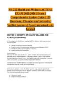 StuviaNurseVault Welcome to StuviaNurseVault! 1427 Documents 0 Flashcards 28 Package deal Community 5 Followers 0 Following 10 Reviews received 5 3 1 1 0 3 weeks ago • evanbutcher FISDAP READINESS ACTUAL EXAM 2026/2027 | Comprehensive Practice Test | Verified Q&A | Pass Guaranteed - A+ Graded This is not the readiness exam. 1 month ago • jaylin651 NUR 163 ACTUAL EXAM 2026/2027 | Concepts of Practical Nursing for the Older Adult | Exam 2 | Verified Q&A | Pass Guaranteed - A+ Graded 1 month ago • nkiashene28 ATI Dosage Calculation RN Fundamentals Proctored Assessment 3.2 – Questions and Answers (2025/2026 Update) | Graded A+ By: • 1 month ago Thank you for the review glad it helped you .If you ever need more study materials feel free to check my other uploads 1 month ago • adelaidasanchez63 Test Bank For Anatomy and Physiology 2nd Edition by OpenStax, ISBN: 9781711494067, All 28 Chapters Covered, Verified Latest Edition | BEST STUDY By: • 1 month ago Thank you for the review glad it helped you .If you ever need more study materials feel free to check my other uploads 5 months ago • drmeena QME Exam 2024 (Actual Exam with 350 Questions, Correct Detailed Verified Answers, Graded A+) + Show more reviews 1463 items Everything Documents Flashcards Package deal Best sold Newest Rating NURS 5432 Family I FNP 1 ACTUAL EXAM 2026 | Midterm Exam Review Guide | University of Texas at Arlington | Latest Update | Verified Q&A | Pass Guaranteed - A+ Graded (0) $12.99 0x sold Excel in your University of Texas at Arlington NURS 5432 Family I (FNP 1) midterm exam with this 2026 complete actual review guide in the latest update. Covers essential topics including foundational family practice concepts, health assessment across the lifespan, common primary care conditions, diagnostic reasoning fundamentals, and evidence-based screening guidelines. Each question includes detailed rationales and elaborated solutions to reinforce advanced practice nursing concepts. Backed by ... i x Exam (elaborations) • 40 pages • by STUDYACEFILES • uploaded 2026 Quick View i x NURS 5432 Family • NURS 5432 Family NURS 5432 Family I FNP 1 ACTUAL EXAM 2026 | Final Exam Review Guide | University of Texas at Arlington | Latest Update | Verified Q&A | Pass Guaranteed - A+ Graded (0) $12.99 0x sold Excel in your University of Texas at Arlington NURS 5432 Family I (FNP 1) final exam with this 2026 complete actual review guide in the latest update. Covers essential topics including health promotion and disease prevention across the lifespan, management of common acute and chronic conditions, diagnostic reasoning and clinical decision-making, pharmacotherapeutics for family practice, and evidence-based clinical guidelines. Each question includes detailed rationales and elaborated solutions to... i x Exam (elaborations) • 36 pages • by STUDYACEFILES • uploaded 2026 Quick View i x NURS 5432 Family • NURS 5432 Family NURS 5432 Family I FNP 1 ACTUAL EXAM 2026 | Final Exam Comprehensive Review Guide | University of Texas at Arlington | Latest Update | Verified Q&A | Pass Guaranteed - A+ Graded (0) $12.49 0x sold Excel in your University of Texas at Arlington NURS 5432 Family I (FNP 1) final exam with this 2026 complete actual comprehensive review guide in the latest update. Covers essential topics including health promotion across the lifespan, common acute and chronic conditions in family practice, diagnostic reasoning, pharmacotherapeutics, and evidence-based clinical guidelines for family nurse practitioners. Each question includes detailed rationales and elaborated solutions to reinforce advanced pr... i x Exam (elaborations) • 28 pages • by STUDYACEFILES • uploaded 2026 Quick View i x NURS 5432 • NURS 5432 Siemens Level 1 Certification Exam ACTUAL EXAM 2024/2025 | Practice Test | Latest Update | Verified Q&A | Pass Guaranteed - A+ Graded (0) $12.99 0x sold Pass your Siemens Level 1 certification with confidence using this 2024/2025 complete actual practice test in the latest update. Covers essential topics including Siemens automation systems, programmable logic controllers (PLC) fundamentals, TIA Portal navigation, basic programming concepts, and industrial control system operations. Each question includes detailed rationales and elaborated solutions to reinforce critical Siemens automation knowledge. Backed by our Pass Guarantee. Download now. i x Exam (elaborations) • 41 pages • by STUDYACEFILES • uploaded 2026 Quick View i x Siemens Level 1 Certification • Siemens Level 1 Certification CHAMBERLAIN UNIVERSITY NR 228: NUTRITION, HEALTH, AND WELLNESS EXAM 1 COMPREHENSIVE REVIEW GUIDE 125 QUESTIONS WITH VERIFIED ANSWERS 2026/2027 LATEST UPDATE | GRADE A SECTION 1: FUNDAMENTALS OF NUTRITION (Questions 1-25) Q1: A client asks a nurse about th (0) $12.49 0x sold Excel in your Chamberlain University NR 228 Nutrition, Health, and Wellness course with this 2026/2027 complete actual Exam 1 comprehensive review guide in the latest update. Covers essential topics including macronutrients and micronutrients, digestion and absorption, nutrition across the lifespan, dietary guidelines, and the relationship between nutrition and chronic disease. Each question includes detailed rationales and elaborated solutions to reinforce key nutrition concepts. Backed by our ... i x Exam (elaborations) • 47 pages • by STUDYACEFILES • uploaded 2026 Quick View i x CHAMBERLAIN UNIVERSITY NR 228: • CHAMBERLAIN UNIVERSITY NR 228: NR 222 Health and Wellness ACTUAL EXAM 2025/2026 | Exam 1 Comprehensive Review Guide | 125 Questions | Chamberlain University | Verified Answers | Pass Guaranteed - A+ Graded (0) $12.99 0x sold Excel in your Chamberlain University NR 222 Health and Wellness course with this 2025/2026 complete actual Exam 1 comprehensive review guide containing 125 questions with verified answers. Covers essential topics including health promotion theories, patient education principles, wellness concepts, 
