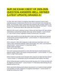 is typically a medical-surgical nursing course taken in the later stages of an associate or diploma nursing program. While the exact content can vary slightly by school, it generally focuses on complex adult health care and clinical decision-making. i x Package deal Exam (elaborations) • 15 pages • by STUVIA2024 • uploaded 2026 Quick View i x NUR 242 • NUR 242 package deal for NUR 242 EXAM (LATEST UPDATE) • By  STUVIA2024 NUR 242 EXAM 3 BEST OF 2025-2026 QUESTION ANSWERS WELL DEFINED (LATEST UPDATE) GRADED A+ (0) $20.49 0x sold NUR 242 EXAM 3 BEST OF QUESTION ANSWERS WELL DEFINED (LATEST UPDATE) GRADED A+