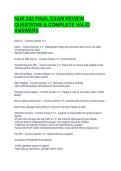 is typically a medical-surgical nursing course taken in the later stages of an associate or diploma nursing program. While the exact content can vary slightly by school, it generally focuses on complex adult health care and clinical decision-making. i x Package deal Exam (elaborations) • 13 pages • by STUVIA2024 • uploaded 2026 Quick View i x NUR 242 • NUR 242 package deal for NUR 242 EXAM (LATEST UPDATE) • By  STUVIA2024 NUR 242 FINAL EXAM REVIEW QUESTIONS & COMPLETE VALID ANSWERS (0) $22.49 0x sold NUR 242 FINAL EXAM REVIEW QUESTIONS & COMPLETE VALID ANSWERS