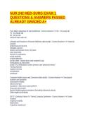 is typically a medical-surgical nursing course taken in the later stages of an associate or diploma nursing program. While the exact content can vary slightly by school, it generally focuses on complex adult health care and clinical decision-making. i x Package deal Exam (elaborations) • 5 pages • by STUVIA2024 • uploaded 2026 Quick View i x NUR 242 • NUR 242 package deal for NUR 242 EXAM (LATEST UPDATE) • By  STUVIA2024 NUR 242 MED-SURG EXAM 1 QUESTIONS & ANSWERS PASSED ALREADY GRADED A+ (0) $18.99 0x sold NUR 242 MED-SURG EXAM 1 QUESTIONS & ANSWERS PASSED ALREADY GRADED A+