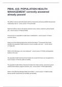 PBHL 415: POPULATION HEALTH MANAGEMENT correctly answered already passed