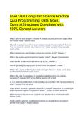 - EGR 1400 Computer Science Practice Quiz Programming, Data Types, Control Structures Questions with 100% Correct Answers • Examen