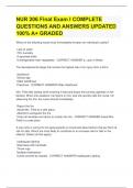 - NUR 206 Final Exam I COMPLETE QUESTIONS AND ANSWERS UPDATED 100% A+ GRADED • Examen
