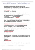 Simon94 On this page, you find all documents, package deals, and flashcards offered by seller Simon94. 149 Documents 0 Flashcards 6 Package deal Community 14 Followers 2 Following 3 Reviews received 2 1 0 0 0 1 year ago • justinbloom Answered Quiz Version 1 - Integration Study Guide 2022. Liberty University Very good minus unnecessary extra pages, no need for single questions on a whole page. It made the document seem like there would be more to it, and was disappointing that there was not. 3 year ago • reenejakes47 PROSPECT NR 546 Test your Knowledge Week 1 Quiz Questions and Answers- Chamberlain College of Nursing 2022/2023. By: • 3 year ago thank you for 5 start review, value you all. 3 year ago • mle6 RN ATI concept-based assessment, proctored exam for level 1 Test BANK with full answers. By: • 3 year ago nice and thanks,welcome By: • 3 year ago THANK VERY MUCH . INFORM OTHERS TO INFORM OTHERS,GOOD THINGS COMING DAILY. By: • 3 year ago thank you a lot. 155 items Everything Documents Flashcards Package deal Best sold Newest Rating Answered PSY 101 Psychology in Action Test Question Bank UPDATED 2022, GRADED A+. (0) $11.99 0x sold PSY 101 Psychology in Action Test Question Bank Answers UPDATED 2022/PSY 101 Psychology in Action Test Question Bank Answers UPDATED 2022/PSY 101 Psychology in Action Test Question Bank Answers UPDATED 2022/PSY 101 Psychology in Action Test Question Bank Answers UPDATED 2022/PSY 101 Psychology in Action Test Question Bank Answers UPDATED 2022 i x Exam (elaborations) • 1117 pages • by Simon94 • uploaded 2022 Quick View i x Brookville Area High School • PSY 101 Answered BIOL 250 A & P Quizzes, latest 2022 - American Public University. (0) $14.99 0x sold BIOL 250 A&P Quizzes with Answers- American Public University/BIOL 250 A&P Quizzes with Answers- American Public University/BIOL 250 A&P Quizzes with Answers- American Public University/BIOL 250 A&P Quizzes with Answers- American Public University/BIOL 250 A&P Quizzes with Answers- American Public University/BIOL 250 A&P Quizzes with Answers- American Public University i x Exam (elaborations) • 10 pages • by Simon94 • uploaded 2022 Quick View i x American Public University Systems • BIOL 250 ASVAB General Science Flashcards solution guide,2022. (0) $10.49 0x sold 2022 ASVAB General Science Solution guide. Geology - The study of the planet Earth as it pertains to the composition, structure, and origin of its rocks. What's a Mineral? - Naturally occurring, inorganic solids with a definite chemical composition and orderly internal crystal structure. Polymorph - two minerals that have the same chemical composition but a different crystal structure What's a Rock? - Aggregates of one or more minerals, and may also contain mineraloids, and organic remains. An... i x Exam (elaborations) • 15 pages • by Simon94 • uploaded 2022 Quick View i x Mississippi State University • GG 1123 Answered BIOCHEM 551 Quiz 3 Re-Updated- Louisiana University. (0) $10.99 0x sold Question 1 1.5 out of 1.5 points Patients with Type II DM due to insulin resistance tend to also have Type IV hypertriglyceridemia possibly as a result of __________? Selected Answer: Decrease lipoprotein lipase activity Question 2 1.5 out of 1.5 points Which of these statements about Proprotein convertase subtilisin/kexin-9 (PCSK-9) is most accurate? Selected Answer: Antibodies that block the action of PCSK-9 will reduce plasma LDL levels Question 3 0 out of 1.5 points The production of... i x Exam (elaborations) • 31 pages • by Simon94 • uploaded 2022 Quick View i x Louisiana State University • BIOCHEM 551 Answered ATI Urinary Elimination - practice assessment plus well elaborations (0) $15.99 0x sold ATI Urinary Elimination - practice assessment answered/rationales A client who has an elevated BUN is most likely to have a manifestation of A client who reports painful urination of a A client who reports urinary frequency A client who has glucose in his urine A nurse removes an indwelling urinary catheter that an older adult client has had in place for 2 days. The nurse should assess the client for which of the following expected outcomes after catheter removal? Temporary urinary retention Uri... i x Exam (elaborations) • 5 pages • by Simon94 • uploaded 2022 Quick View i x Chamberlain College Of Nursing • NURSING 526 ATI 5 Quiz urinary elimination, well explained – latest 2022. (0) $10.89 0x sold ATI Capstone Post Assessments Questions & Answers. A pregnant client has a history of giving birth to one set of twin boys, one term girl and 2 early spontaneous abortions. What is her gravida and para? A nurse is providing care for an uncircumcised male newborn and his mother. What information should be provided during discharge regarding bathing of the penile area of the newborn male? The 24-year-old client inquires about use of the diaphragm for birth control. What five (5) instructions would... i x Exam (elaborations) • 2 pages • by Simon94 • uploaded 2022 Quick View i x Herzing University Brookfield • NSG MISC Elaborated Emergency Medicine: American Red Cross Lifeguarding Test (CPR/First Aid) 2022. (0) $10.99 0x sold American Red Cross Lifeguarding Test (CPR/First Aid) 2022. CPR Should be performed on a victim who is... After an AED says "No Shock Advised," it is best to... When giving chest compressions to an adult, how do you position your hands? Once you have turned on the AED, you should... When providing care to a conscious infant who is choking, it is most appropriate to... The cycle of chest compressions and ventilations in two-rescuer CPR for an infant is... The purpose of a secondary assessment is... i x Exam (elaborations) • 4 pages • by Simon94 • uploaded 2022 Quick View i x Chamberlain School Of Nursing • BUSINESS MT490 CNA - Certified Nursing Assistant Postpartum Hemorrhage (PPH), Case Study. (0) $17.49 0x sold CNA - Certified Nursing Assistant Postpartum Hemorrhage (PPH). i x Exam (e