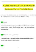 Take the first step towards a successful career in nutrition with our comprehensive NASM Nutrition Exam Study Guide, carefully crafted to help you ace your certification exam. With 100% verified answers and an impressive A+ grade rating, this study resource is your ultimate key to achieving excellence in 2025/2026.