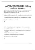 Prepare with confidence using the AORN Periop 101 Final Exam 2025/2026 resource. Includes real exam questions, verified correct detailed answers, and A+ graded solutions. Ideal for perioperative nursing students and professionals looking for trusted preparation for the AORN Periop 101 final exam.