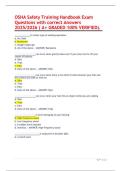 Prepare effectively for the OSHA Safety Training Handbook Exam 2025/2026 with this set of verified practice questions and correct answers (A+ graded). Designed to cover the latest OSHA guidelines and workplace safety standards, this resource ensures thorough exam readiness. Perfect for safety professionals, supervisors, and students seeking OSHA certification. Download the complete, updated study pack on Stuvia today.