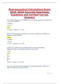 The Pharmaceutical Calculations Exam 2025–2026 resource includes accurate real exam questions with verified correct answers. Covering dosage calculations, conversions, IV flow rates, and safe medication administration, it helps nursing and pharmacy students prepare effectively. Available on Stuvia, this exam prep tool builds confidence, ensures mastery of pharmaceutical math, and supports academic success in pharmacology and clinical practice.