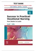 Test Bank for Success in Practical/Vocational Nursing: From Student to Leader, 10th Edition by Lisa Carroll and Janyce L. Collier |all chapters covered|