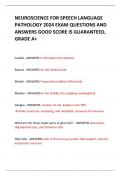 NEUROSCIENCE FOR SPEECH LANGUAGE PATHOLOGY 2024 EXAM QUESTIONS AND ANSWERS GOOD SCORE IS GUARANTEED, GRADE A+