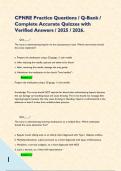 3. Clubbed fing... i x Exam (elaborations) • 38 pages • by TestGuides1 • uploaded 2025 Quick View i x NCLEX-PN • NCLEX-PN CPNRE Practice Questions / Q-Bank / Complete Accurate Quizzes with Verified Answers / 2025 / 2026. (2) $22.49 0x sold CPNRE Practice Questions / Q-Bank / Complete Accurate Quizzes with Verified Answers / 2025 / 2026.