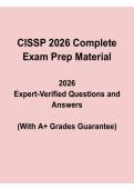The CISM Management Information Systems Final Exam 2 Study Guide 2025/2026 delivers a comprehensive collection of verified questions and detailed answers focused on key MIS concepts, security governance, risk controls, systems architecture, and information assurance. Designed to support high-level exam preparation, this A+ grade guaranteed guide provides structured explanations, exam-style practice, and essential topic coverage to help candidates confidently master core CISM competencies and exc...