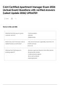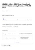 Testport On this page, you find all documents, package deals, and flashcards offered by seller Testport. 1894 Documents 0 Flashcards 86 Package deal Community 3 Followers 0 Following 996 Reviews received 978 14 3 0 1 5 months ago • shuqinlijin NC Post Licensing – 303 REAL EXAM COMPLETE QUESTIONS WITH 100% RATED CORRECT ANSWERS 2025 LATEST UPDATED 100% (ACCURATE ) GET A+!! 6 months ago • vegascerna31 BIO 201 RIO SALADO EXAM 1/ BIO 2O1 ANATOMY AND PHYSIOLOGY NEWEST 2025 ACTUAL EXAM COMPLETE 100 QUESTIONS AND CORRECT DETAILED ANSWERS (VERIFIED ANSWERS) |ALREADY GRADED A+ (BRAND NEW VERSION!) 6 months ago • TutorGemini MBA 621 Midterm Study | 2024 -2025 LATEST UPDATED | COMPREHENSIVE QUESTIONS WITH 100% RATED ANSWERS | GUARANTEED TO PASS!! 6 months ago • TutorGemini MBA 621 FINAL | 2024 -2025 LATEST UPDATED | COMPREHENSIVE QUESTIONS WITH 100% RATED ANSWERS | GUARANTEED TO PASS!! 6 months ago • TutorGemini MBA 621 EXAM| 2024 -2025 LATEST UPDATED | COMPREHENSIVE QUESTIONS WITH 100% RATED ANSWERS | GUARANTEED TO PASS!! + Show more reviews 1988 items Everything Documents Flashcards Package deal Best sold Newest Rating Cambridge IGCSE Business Studies Exam fully solved & updated (latest version verified for accuracy) (Questions + Answers) Solved 100% Correct!! (0) $15.49 0x sold Cambridge IGCSE Business Studies Exam fully solved & updated (latest version verified for accuracy) (Questions + Answers) Solved 100% Correct!! i x Exam (elaborations) • 9 pages • by Testport • uploaded 2026 Quick View i x Cambridge IGCSE Business Studies • Cambridge IGCSE Business Studies Pharmacology (PHA100) EXAM (updated 2026) Questions & Answers | Latest Already Graded A+ UPDATE 2026 (0) $15.49 0x sold Pharmacology (PHA100) EXAM (updated 2026) Questions & Answers | Latest Already Graded A+ UPDATE 2026 i x Exam (elaborations) • 32 pages • by Testport • uploaded 2026 Quick View i x Pharmacology • Pharmacology CHES Exam 8th Edition Study Guide Most Recent exam COMPLETE (2026) EXAM Questions and Answers (Verified Answers) (Latest Update 2026) UPDATE! (0) $15.49 0x sold CHES Exam 8th Edition Study Guide Most Recent exam COMPLETE (2026) EXAM Questions and Answers (Verified Answers) (Latest Update 2026) UPDATE! i x Exam (elaborations) • 18 pages • by Testport • uploaded 2026 Quick View i x CHES 8th Edition Study • CHES 8th Edition Study CCC Module 4 Post Test Exam fully solved & updated (latest version verified for accuracy) | Latest!! (0) $15.99 0x sold CCC Module 4 Post Test Exam fully solved & updated (latest version verified for accuracy) | Latest!! i x Exam (elaborations) • 17 pages • by Testport • uploaded 2026 Quick View i x CCC Module 4 Post • CCC Module 4 Post CAM Certified Apartment Manager Exam 2026 (Actual Exam) Questions with verified Answers (Latest Update 2026) UPDATE!! (0) $15.49 0x sold CAM Certified Apartment Manager Exam 2026 (Actual Exam) Questions with verified Answers (Latest Update 2026) UPDATE!! i x Exam (elaborations) • 17 pages • by Testport • uploaded 2026 Quick View i x CAM Certified Apartment Manager • CAM Certified Apartment Manager BIO-202 Lab EXAM 1 GCU Questions & Answers | 100% Verified solutions |Questions with Correct Answers 2026 latest update!! (0) $15.49 0x sold BIO-202 Lab EXAM 1 GCU Questions & Answers | 100% Verified solutions |Questions with Correct Answers 2026 latest update!! i x Exam (elaborations) • 10 pages • by Testport • uploaded 2026 Quick View i x BIO-202 Lab • BIO-202 Lab BIOL 322 Midterm (2026) Exam Questions & Answers | Latest Already Graded A+ UPDATE |2026!! (0) $15.49 0x sold BIOL 322 Midterm (2026) Exam Questions & Answers | Latest Already Graded A+ UPDATE |2026!! i x Exam (elaborations) • 13 pages • by Testport • uploaded 2026 Quick View i x BIOL 322 • BIOL 322 AFAB 110 Final EXAM Most Recent exam COMPLETE (2026) EXAM Questions and Answers (Verified Answers) (Latest Update 2026) UPDATE!! (0) $15.99 0x sold AFAB 110 Final EXAM Most Recent exam COMPLETE (2026) EXAM Questions and Answers (Verified Answers) (Latest Update 2026) UPDATE!! i x Exam (elaborations) • 12 pages • by Testport • uploaded 2026 Quick View i x AFAB 110 • AFAB 110 Radon Test Spruce Exam comprehensive questions and verified answers ACTUAL EXAM 2026 TEST!! Graded A+ | 2026 EXAM UPDATE (0) $15.49 0x sold Radon Test Spruce Exam comprehensive questions and verified answers ACTUAL EXAM 2026 TEST!! Graded A+ | 2026 EXAM UPDATE i x Exam (elaborations) • 15 pages • by Testport • uploaded 2026 Quick View i x Radon Tet Spruce • Radon Tet Spruce Atmae CTM Exam (2026) UPDATE Verified Questions And Answers | With 100% Correct Answers graded A+ Guaranteed Success!! (0) $15.99 0x sold Atmae CTM Exam (2026) UPDATE Verified Questions And Answers | With 100% Correct Answers graded A+ Guaranteed Success!! i x Exam (elaborations) • 7 pages • by Testport • uploaded 2026 Quick View i x Atmae CTM • Atmae CTM 1 ... 4 5 6 ...