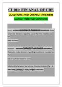 CI 101: FIN ANAL OF CRE QUESTIONS AND CORRECT ANSWERS (LATEST VERIFIED CONTENT)