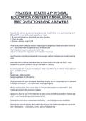 - PRAXIS II: HEALTH AND PHYSICAL EDUCATION- CONTENT KNOWLEDGE (5857) QUESTIONS AND ANSWERS • Exam (elaborations)