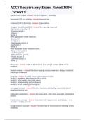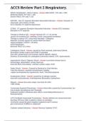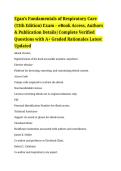 Victoria's-Examsale Here you'll find the best, most recent documents, at an affordable price. 274 Documents 0 Flashcards 4 Package deal Community 0 Followers 1 Following 278 items Everything Documents Flashcards Package deal Best sold Newest Rating ACCS – Patient Assessment Questions and Correct Detailed Answers – Verified and Graded A+ – Newest Version (0) $23.49 0x sold This document provides a comprehensive set of ACCS (Acute Care Certified Specialist) patient assessment questions with fully verified and detailed answers. It covers essential topics such as vital signs interpretation, cardiovascular and respiratory assessment, neurological evaluation, multisystem patient evaluation, and critical thinking in acute care settings. The material is structured for exam-focused preparation and practical review, helping healthcare professionals reinforce patient assess... i x Exam (elaborations) • 37 pages • by Victoria48 • uploaded 2026 Quick View i x Nursing Pediatrics • Nursing Pediatrics ACCS Drugs – Study Exam Questions and Answers with 100% Correct Solutions – A+ Grade Complete Review (0) $23.49 0x sold This document provides a comprehensive set of ACCS (Acute Care Certified Specialist) study questions and fully verified answers focused on drugs and pharmacology in critical care. It covers essential topics such as medication classifications, indications, dosages, side effects, interactions, and administration in acute care settings. The material is structured for effective exam preparation, practice, and review, helping healthcare professionals master pharmacology concepts and achieve top score... i x Exam (elaborations) • 7 pages • by Victoria48 • uploaded 2026 Quick View i x Nursing Pediatrics • Nursing Pediatrics AANP AGPCNP PSI Test 1 & 2 – Latest Fall – Answered and Graded Complete Exam Material (0) $23.49 0x sold This document provides the latest Fall AANP AGPCNP (Adult-Gerontology Primary Care Nurse Practitioner) PSI Tests 1 and 2 with fully answered and graded solutions. It covers essential exam topics including adult and gerontology patient assessment, disease management, pharmacology, health promotion, and clinical decision-making. The material is structured for targeted exam preparation and review, making it ideal for NP students and professionals aiming to achieve high scores on the AGPCNP certific... i x Exam (elaborations) • 37 pages • by Victoria48 • uploaded 2026 Quick View i x Nursing Pediatrics • Nursing Pediatrics Egan’s Fundamentals of Respiratory Care (13th Edition) Exam – eBook Access, Authors & Publication Details – Complete Verified Questions with A+ Graded Rationales (0) $23.49 0x sold This document provides a comprehensive exam review for Egan’s Fundamentals of Respiratory Care (13th Edition), including complete verified questions and detailed rationales graded A+. It covers essential respiratory care topics such as pulmonary anatomy and physiology, airway management, mechanical ventilation, oxygen therapy, diagnostic testing, and patient assessment. The material is structured for thorough exam preparation and practical application, ideal for respiratory therapy students an... i x Exam (elaborations) • 34 pages • by Victoria48 • uploaded 2026 Quick View i x Nursing Pediatrics • Nursing Pediatrics ACCS Respiratory Exam – Rated 100% Correct – Complete Review and Practice Material (0) $23.49 0x sold This document provides a fully verified ACCS (Acute Care Certified Specialist) Respiratory Exam with 100% correct answers. It covers essential topics such as airway management, mechanical ventilation, oxygen therapy, respiratory emergencies, patient monitoring, and evidence-based critical care interventions. The material is structured for focused exam preparation and practical review, making it ideal for healthcare professionals seeking to master the ACCS respiratory section and achieve top scor... i x Exam (elaborations) • 57 pages • by Victoria48 • uploaded 2026 Quick View i x Nursing Pediatrics • Nursing Pediatrics ACCS Review Part 2 – Respiratory – Comprehensive Exam and Study Material (0) $23.49 0x sold This document provides a focused review for the ACCS (Acute Care Certified Specialist) Part 2 Respiratory section, covering critical respiratory concepts, pathophysiology, assessment, and management strategies. Topics include airway management, mechanical ventilation, oxygen therapy, respiratory emergencies, patient monitoring, and evidence-based interventions. The material is structured to support exam preparation and clinical review for healthcare professionals aiming to excel in the ACCS cert... i x Exam (elaborations) • 4 pages • by Victoria48 • uploaded 2026 Quick View i x Nursing Pediatrics • Nursing Pediatrics NUR203 Exam 4 – Pediatric Nursing – Questions and Verified Answers – 100% Accurate – Grade A – Fortis College (0) $23.49 0x sold This document contains Exam 4 questions and fully verified answers for the NUR203 Pediatric Nursing course at Fortis College, with 100% accurate solutions. It covers essential topics such as pediatric growth and development, common illnesses, immunizations, medication administration, patient assessment, and nursing care planning. The material is structured for efficient exam preparation and review, helping students reinforce key concepts and achieve top grades in NUR203. i x Exam (elaborations) • 41 pages • by Victoria48 • uploaded 2026 Quick View i x Nursing Pediatrics • Nursing Pediatrics Exam 2 – NUR203 Pediatric Nursing – Questions and Verified Answers – Grade A – Fortis College (0) $23.49 0x sold This document contains Exam 2 questions and fully verified answers for the NUR203 Pediatric Nursing course at Fortis College. It covers essential pediatric nursing topics including growth and development, common pediatric illnesses, immunizations, medication administration, patient assessment, and care planning. The material is