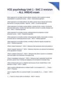 The material is structured to support effective revision, strengthen understanding, and help students prepare confidently for high performance in their SAC assessment. i x Examen • 11 páginas • por Victoria48 • subido 2026 Vista rápida i x psychology • psychology VCE Psychology Unit 1 Exam Revision, Victorian Curriculum (VCAA), Current Study Design – Complete Exam Solutions and Revision Guide (0) $23.49 0x vendido This document offers a thorough VCE Psychology Unit 1 exam revision resource with fully worked and clearly explained solutions aligned to the current VCAA study design. It covers key topics such as brain function, human development, research methods, and psychological concepts required for Unit 1 assessments.