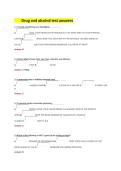 Ideal for those preparing for the DMV’s Drug and Alcohol T... i x Examen • 22 páginas • por Victoria48 • subido 2026 Vista rápida i x drug and alchohol • drug and alchohol Drug and Alcohol Test Answers – Fully Verified and Accurate Study Resource (0) $23.49 0x vendido This document provides a comprehensive collection of drug and alcohol test answers, fully verified and accurate for exam preparation. It covers essential topics such as substance abuse, the physiological effects of drugs, addiction, treatment options, and the legal and ethical aspects of drug and alcohol use.