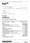 VERIFIED AQA JUNE 2024 A-level CHEMISTRY Paper 1 Inorganic and Physical Chemistry MERGED QUESTION PAPER> MARK SCHEME> 100% GUARANTEEry