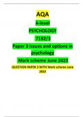 AQA 2022 JUNE A-level PSYCHOLOGY 7182/3 Paper 3 Issues and options in psychology Mark scheme June 2022