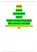 AQA JUNE 2022 A-level GEOGRAPHY 7037/2 Paper 2 Human Geography Mark scheme June 2022