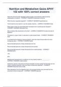 Nutrition and Metabolism Quizs APHY 102 with 100% correct answers