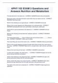 APHY 102 EXAM 3 Questions and Answers Nutrition and Metabolism