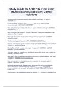 Study Guide for APHY 102 Final Exam (Nutrition and Metabolism) Correct solutions
