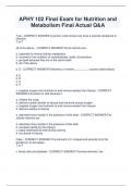 APHY 102 Final Exam for Nutrition and Metabolism Final Actual Q&A