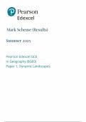 Pearson Edexcel A LEVEL Geography MARK SCHEME PAPER 1 2025 (8GE0: Dynamic Landscapes)
