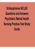 Strengthen psychiatric nursing knowledge with this comprehensive Schizophrenia NCLEX Questions and Answers Practice Test. This updated 2025/ 2026 resource includes complete NCLEX-style questions and detailed answers with solution to help nursing students master schizophrenia assessment, therapeutic interventions, patient care planning, and mental health clinical decision-making, improving performance on NCLEX exams, coursework, and clinical practice.