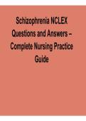 Master schizophrenia care with this comprehensive Schizophrenia NCLEX Questions and Answers Complete Nursing Practice Guide. This updated 2025/ 2026 resource includes complete NCLEX-style questions and detailed answers with solution to help nursing students reinforce psychiatric assessment, therapeutic interventions, patient care planning, and clinical reasoning, improving performance on NCLEX exams, coursework, and clinical practice.