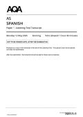 AS-Level AQA 2025 Spanish Paper 1 Including Insert, Transcript, Mark Scheme