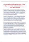 Abnormal Psychology Vignettes Final Exam review questions and answers 2023 latest update Abnormal Psychology Vignettes Final Exam review questions and answers 2023 latest update