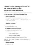 Apuntes completos del tema Crisis, guerra y revolución en los orígenes de la España contemporánea (1808–1814), adaptados a 2º de Bachillerato.