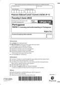 2025 Pearson Edexcel Level 1/Level 2 GCSE (9–1) Portuguese PAPER 3: Reading and understanding in Portuguese Higher
