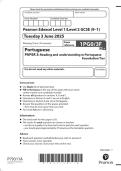2025 Pearson Edexcel Level 1/Level 2 GCSE (9–1) Portuguese PAPER 3: Reading and understanding in Portuguese