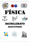 Este libro de 120 páginas lo he hecho yo a lo largo de Bachillerato, a partir de los apuntes que tomo en clase y las diapositivas que usaba mi profesor para explicar. Todas las fórmulas, ecuaciones, definiciones teóricas, representaciones, explicaciones... están aquí. Contiene todos los contenidos del examen de selectividad de Física, dividido en bloques, y estos en temas. Tiene al final enunciados de ejercicios de selectividad de cada bloque.